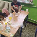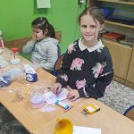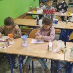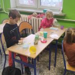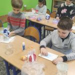 Kilka dni temu dzieci z klasy 1 a pracowały w pocie czoła. Za pomocą kolorowej kredy barwiły sól, którą następnie wsypywały do szklanych pojemników. Potem wykonały serduszko na patyku i upominek z okazji Dnia Babci i Dziadka gotowy.