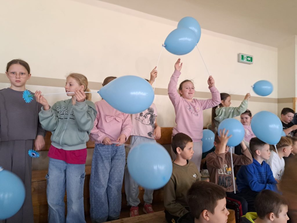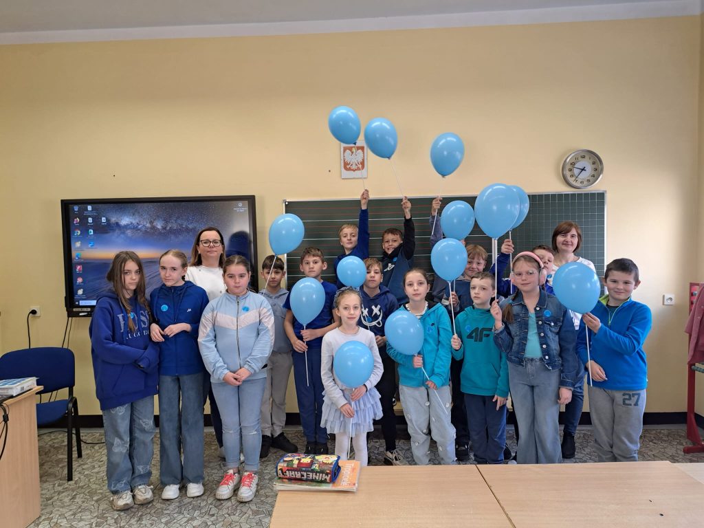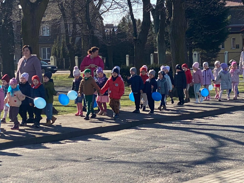 1 kwietnia odbyły się zabawy sportowe uczniów klas pierwszych z przedszkolakami z grupy Pszczółki i Kotki. 2 kwietnia w klasach 1 – 3 odbyła się prelekcja na temat autyzmu. Dzieci wiedzą już co to jest autyzm, jakie są jego objawy, jak na co dzień funkcjonują ludzie w spektrum i jak my powinniśmy zachowywać się względem nich. Obchody zakończyliśmy 3 kwietnia wspólnym, z przedszkolakami, przemarszem ulicami naszej miejscowości.