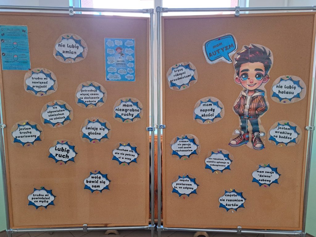 2 kwietnia obchodzimy Światowy Dzień Świadomości Autyzmu. Pamiętajmy, jak istotne jest zrozumienie i akceptacja osób żyjących w spektrum autyzmu oraz jak ważne jest okazywanie empatii względem nich. Z tej okazji w dniach 1 – 3 kwietnia przybliżyliśmy uczniom informacje na temat zaburzeń z spektrum autyzmu.