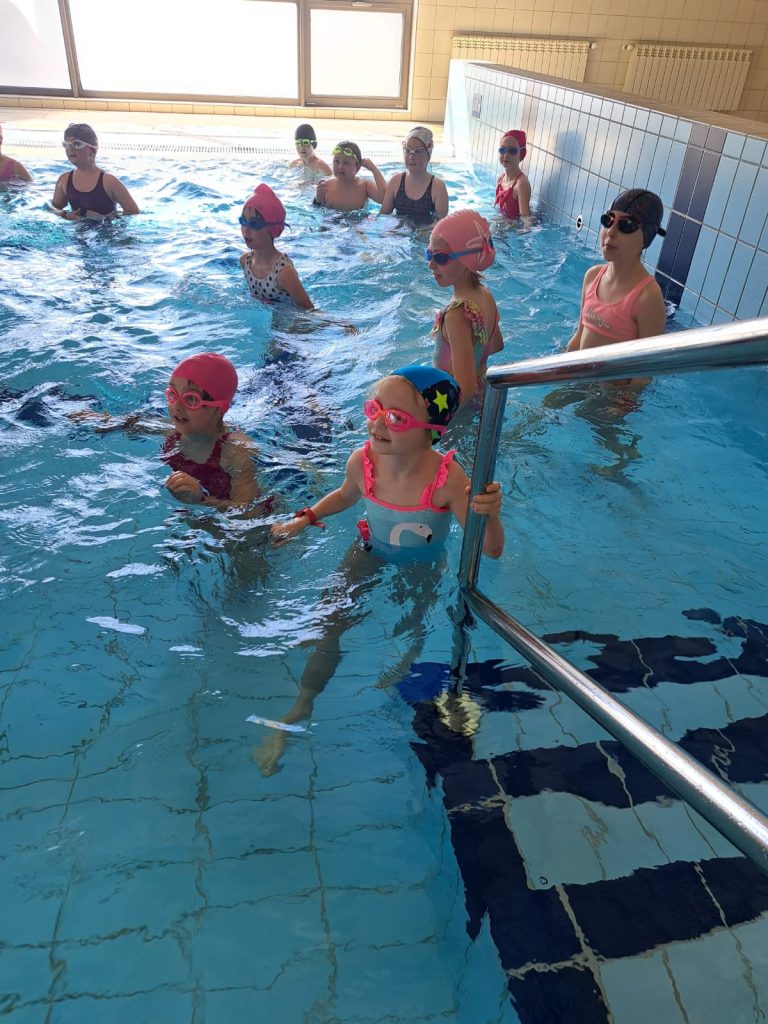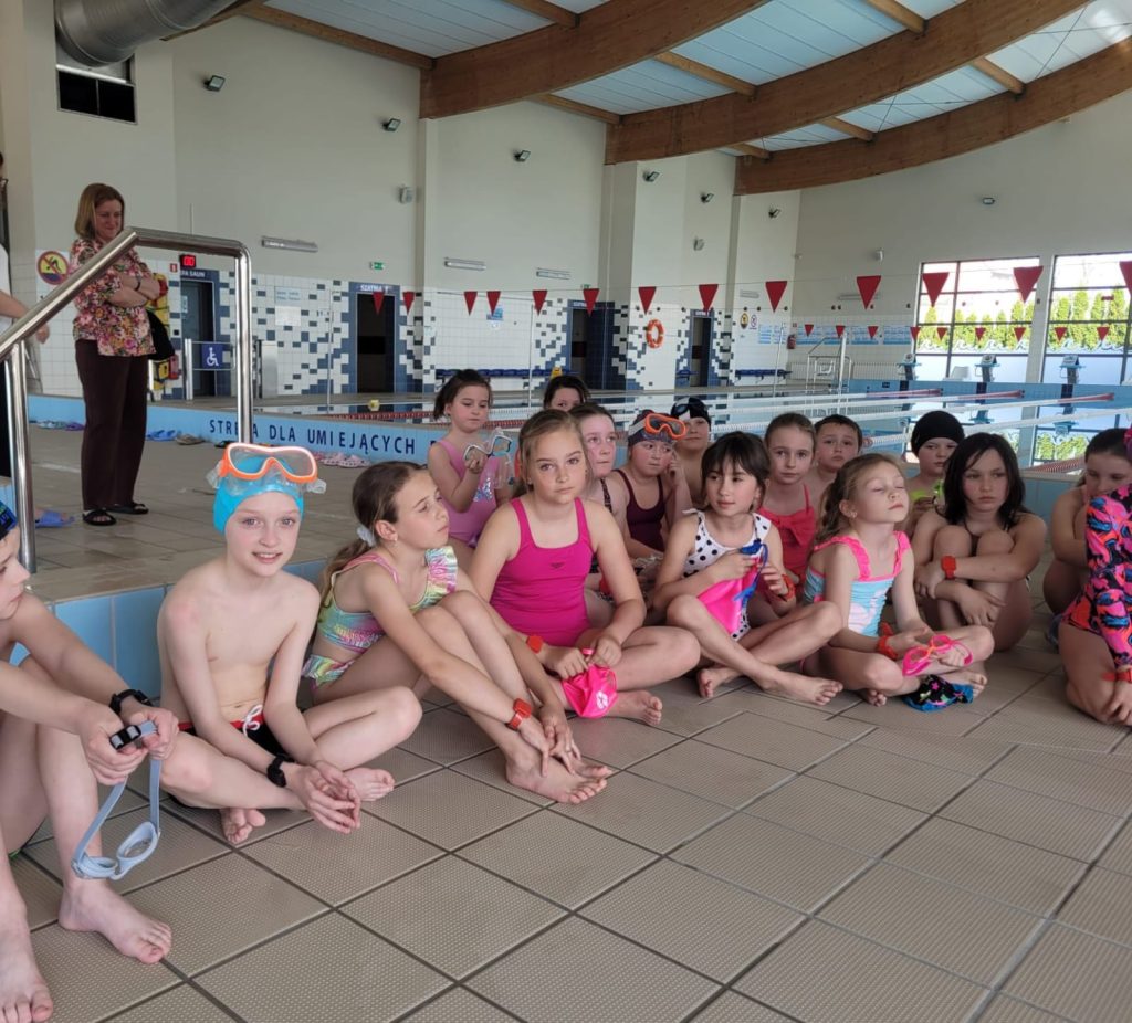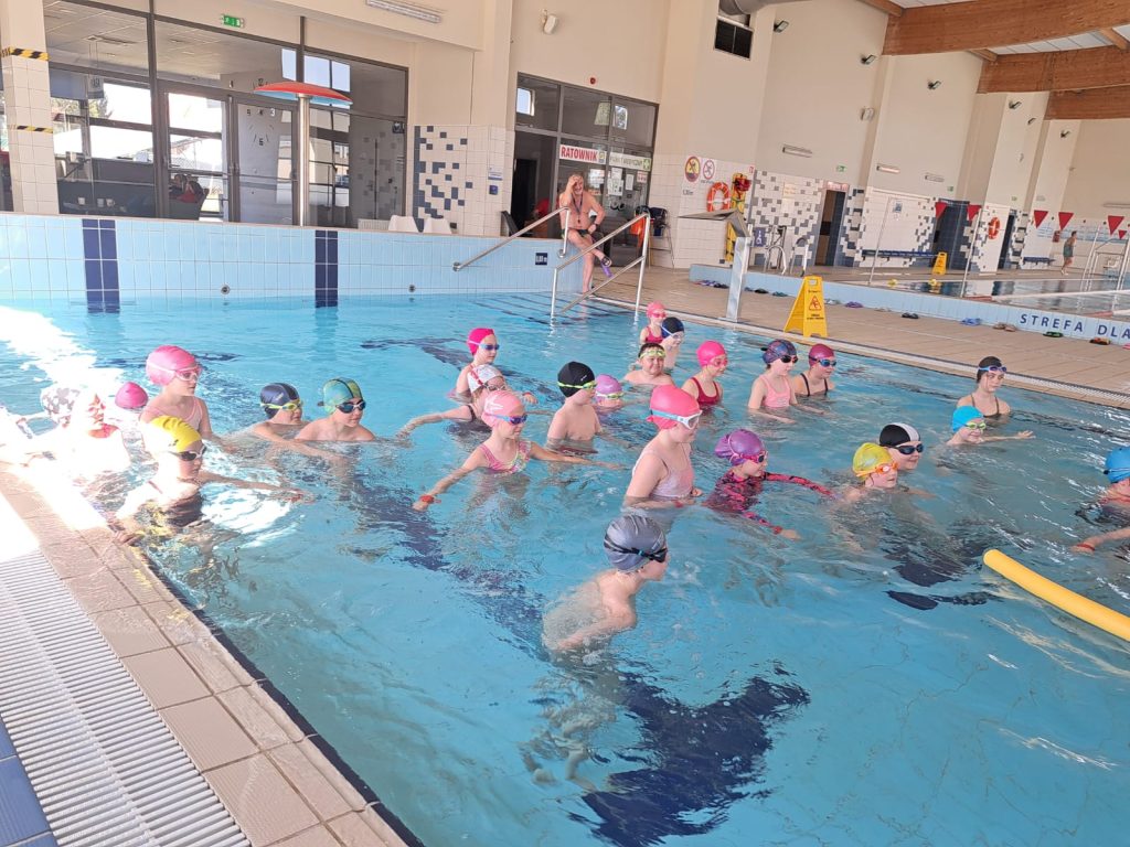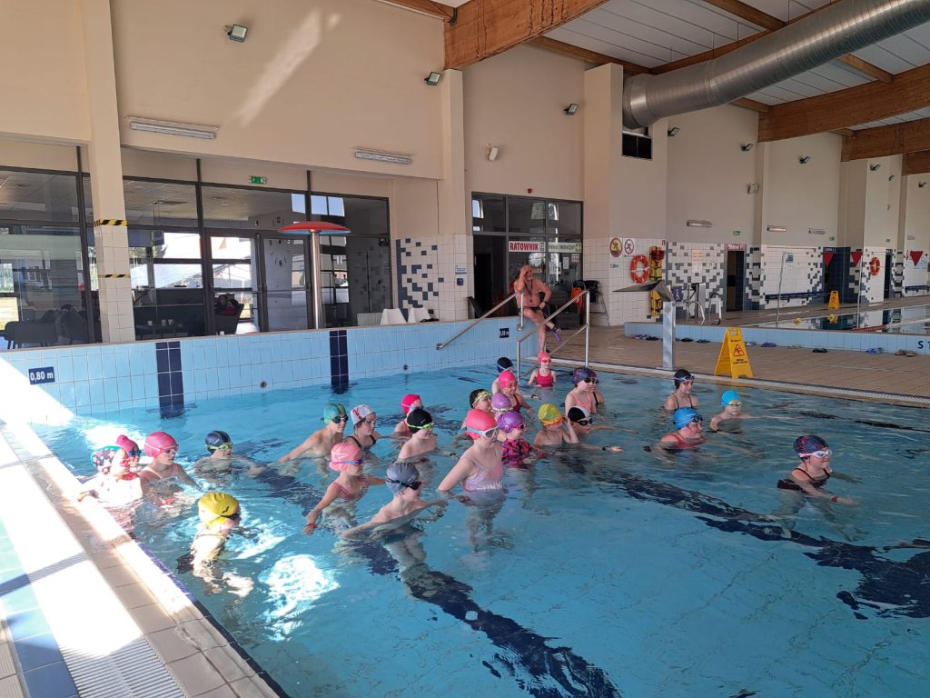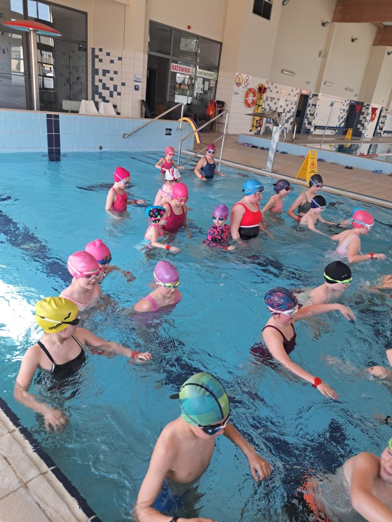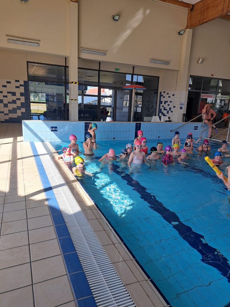 Dnia 08.04.2025 r. kolejna grupa uczniów rozpoczęła naukę pływania w ramach projektu ABC PŁYWANIE. Tym razem w zajęciach na basenie uczestniczą uczniowie z klas 3b i 2b.