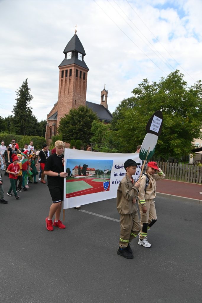 O godzinie 14 rozpoczęła się Parada. Wśród uczestników nie zabrakło władz samorządowych, Orkiestry Kopalni Turów, motocyklistów, strażaków, leśników oraz oczywiście reprezentacji placówek oświatowych z całej Gminy, w tym uczniów i nauczycieli SP w Węglińcu. Barwny pochód rozpoczął się pod bramą Szkoły a zakończył na Placu Wolności.