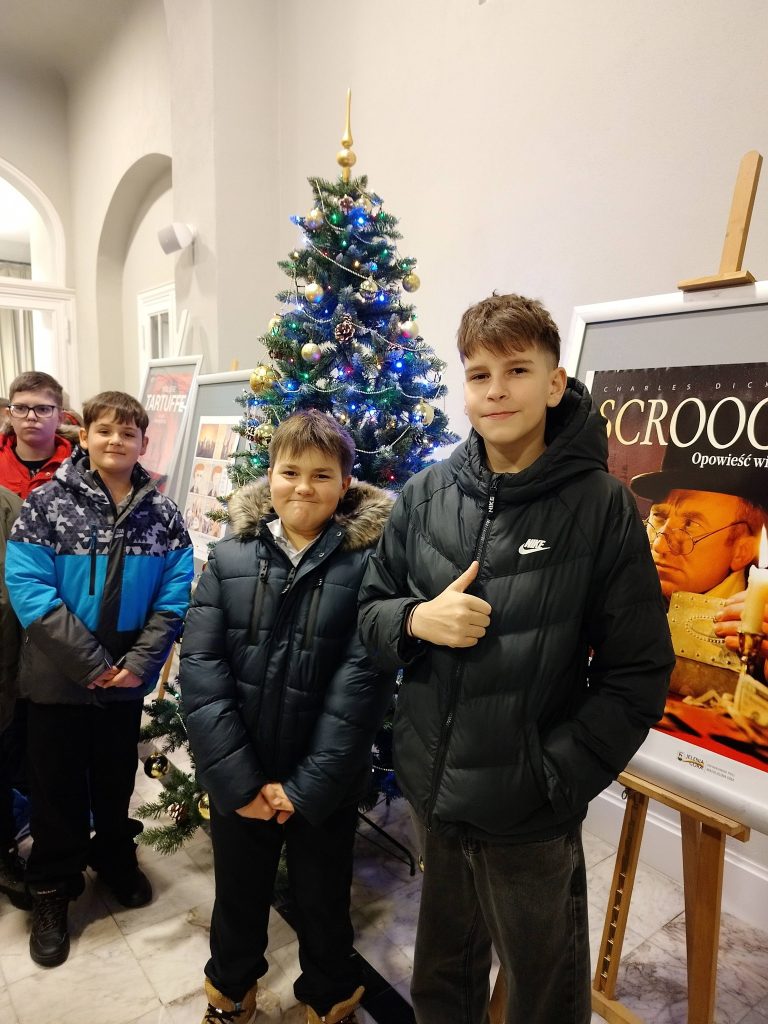 Klasy 5b, 6a oraz 6b wzięły dziś udział w mikołajkowej wycieczce do Teatru im. C. K. Norwida w Jeleniej Górze finansowanego w ramach przedsięwzięcia Ministerstwa Edukacji Narodowej „Wyjście z klasą”. Uczniowie obejrzeli piękny spektakl „Scrooge. Opowieść wigilijna”, który wprowadził widzów w klimat Bożego Narodzenia i przypomniał, że te święta to niezwykle cenny czas – czas życzliwości, radości i przyjaźni. Spektakl zrobił wrażenie nie tylko ze względu na historię, którą opowiada, ale również poprzez grę aktorską, scenografię i oprawę muzyczną. Wyjazd był bardzo udany!