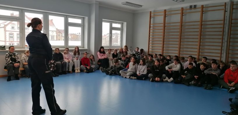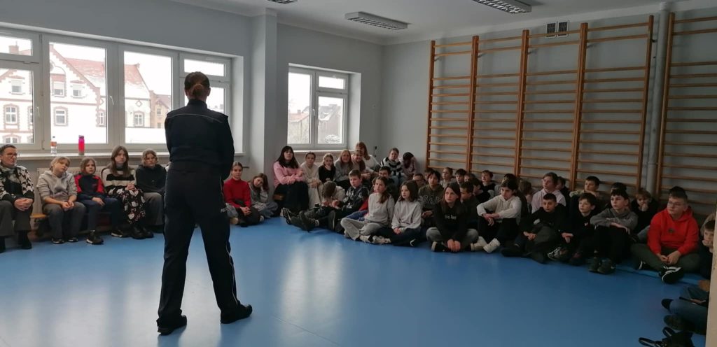 Dnia 28 stycznia br. odbyło się spotkanie dla uczniów klas 5 i 6 z Aspirantem Komendy Powiatowej Policji w Zgorzelcu Panią Mariolą Śniegula. Podczas spotkania poruszony został temat odpowiedzialności prawnej nieletnich, demoralizacji i czynów zabronionych.