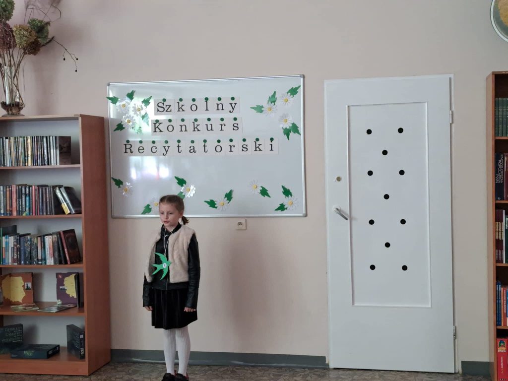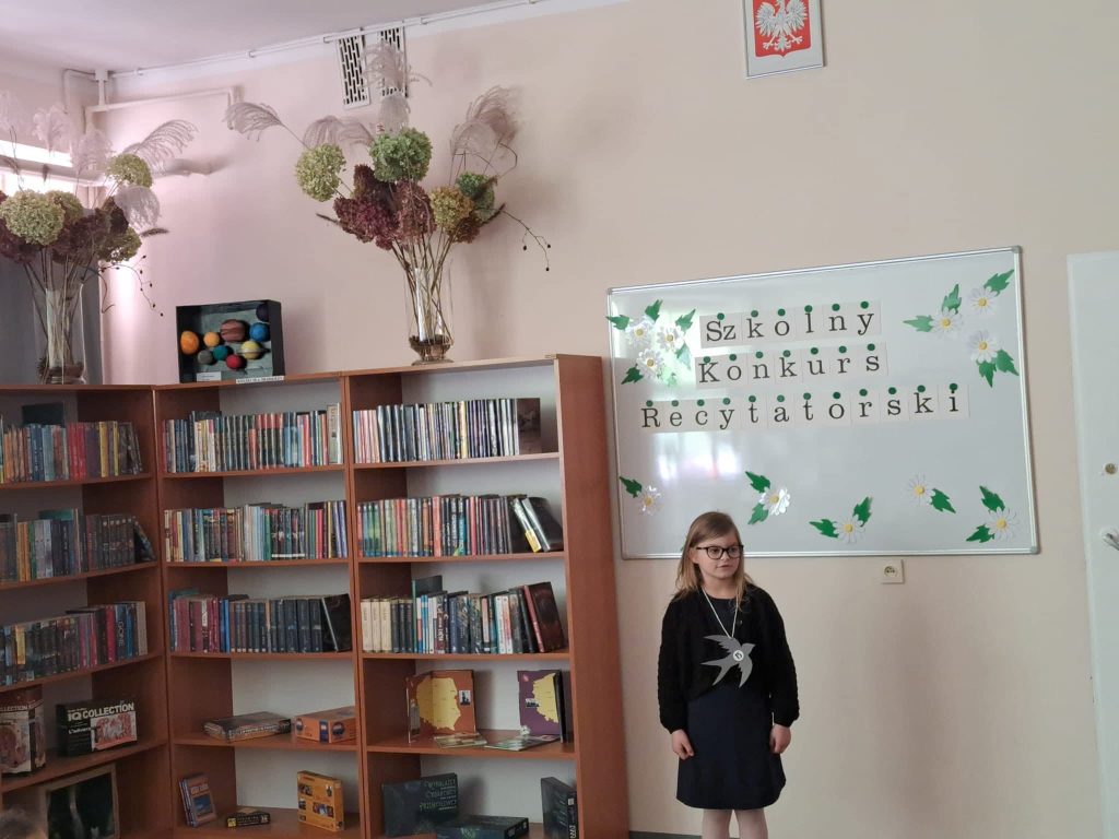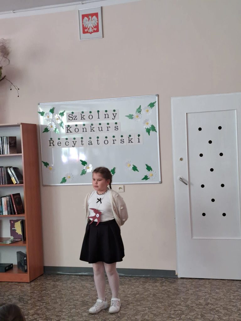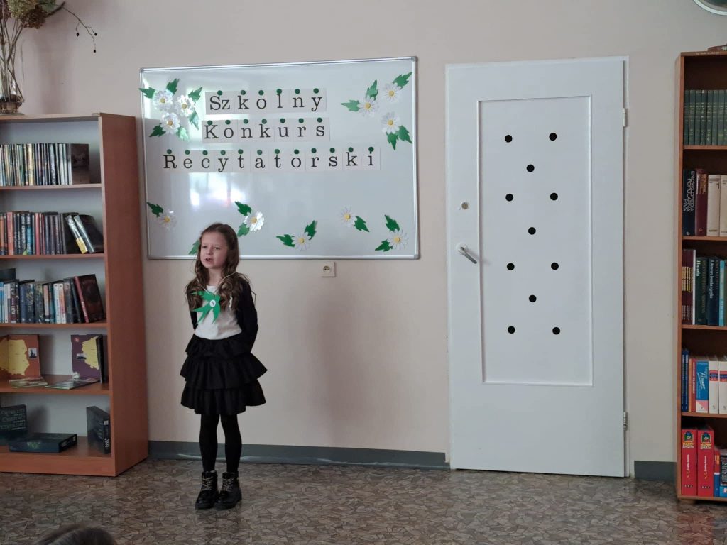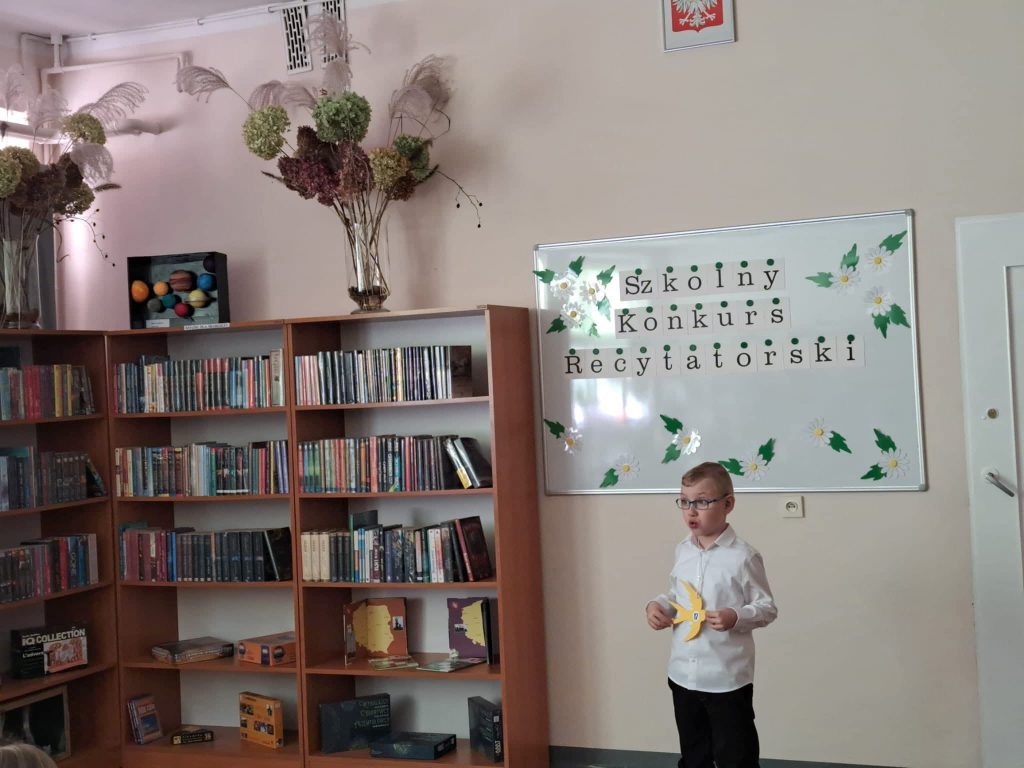 Dnia 6 marca w naszej szkole odbył się Szkolny Konkurs Recytatorski dla uczniów klas 1 – 3. Celem wydarzenia było rozwijanie wrażliwości na piękno języka polskiego, doskonalenie umiejętności recytatorskich oraz zachęcanie dzieci do kontaktu z literaturą. Uczestnicy zaprezentowali przygotowane wcześniej wiersze wykazując się dużym zaangażowaniem, odwagą oraz piękną interpretacją utworów. Występy uczniów zostały ocenione przez komisję konkursową, która wyłoniła laureatów: