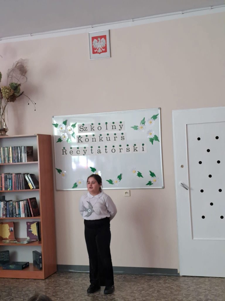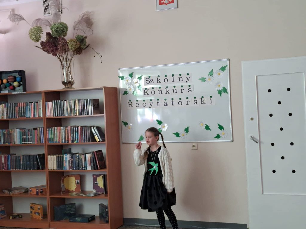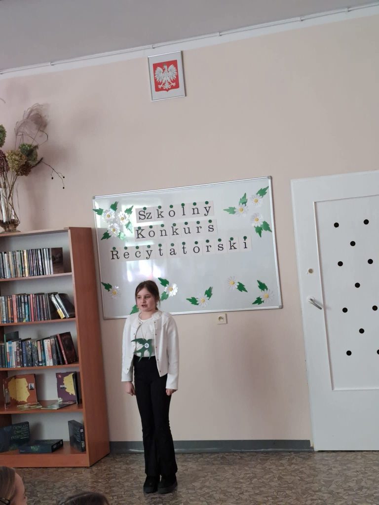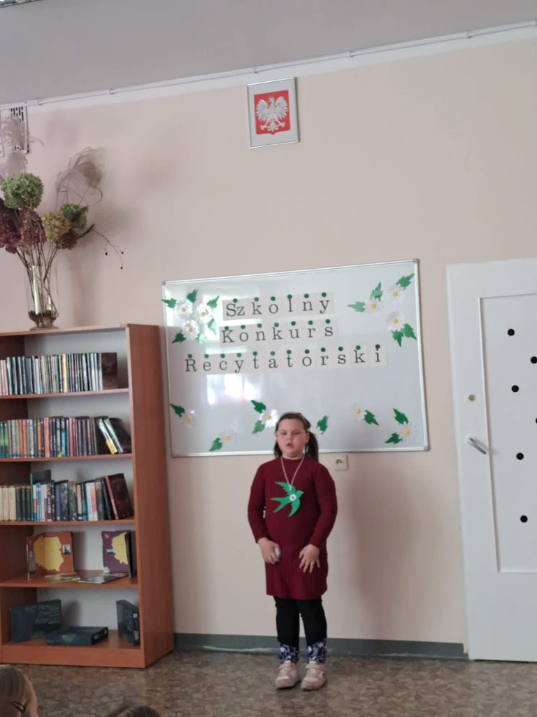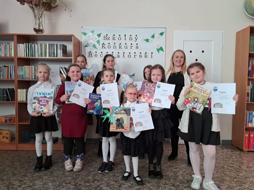 Dnia 6 marca w naszej szkole odbył się Szkolny Konkurs Recytatorski dla uczniów klas 1 – 3. Celem wydarzenia było rozwijanie wrażliwości na piękno języka polskiego, doskonalenie umiejętności recytatorskich oraz zachęcanie dzieci do kontaktu z literaturą. Uczestnicy zaprezentowali przygotowane wcześniej wiersze wykazując się dużym zaangażowaniem, odwagą oraz piękną interpretacją utworów. Występy uczniów zostały ocenione przez komisję konkursową, która wyłoniła laureatów:
