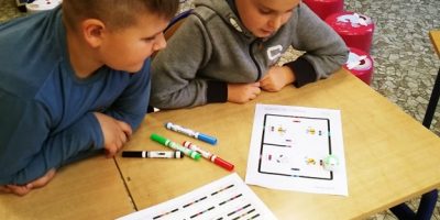W ramach zajęć informatycznych uczniowie klas I – III uczą się podstaw programowania. Dzisiejsze zajęcia uatrakcyjnił mały, ale bardzo inteligentny